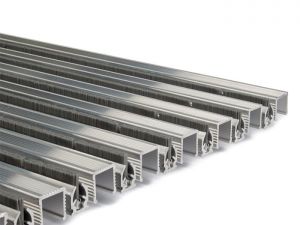 Beschreibung: Faltbare Eingangsmatte, für Auβen und Innenraum (Zone I) für Sohlenreinigung vom Kleinschmutz. Besonders geeignet für Produktionshallen. Mit Anwendung vom Rippen C-Profil und Kratzkanten aus hartem und steifem Nylon. Anwendung bei großem Fußgänger-, Einkaufswagen, Rollstuhlverkehr, z.B. für Hotels, Büros, Geschäfte, Wohngebäuden.