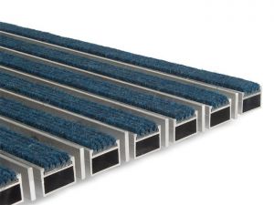 Beschreibung: Faltbare Eingangsmatte, für Innenraum (Zone II und III) für Sohlenreinigung und Trocknung. Mit Ripseinlage (Teppichboden) - Lux-Kategorie und mit Anwendung des Aluminium-Flacheisens (abkratzend). Anwendung bei großem Fußgänger-, Einkaufswagen-, Rollstuhlverkehr, z.B. für Hotel, Büros, Geschäfte, Wohngebäuden..