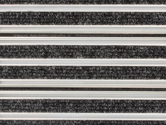 Aluminium - Trägerprofil: natürlich-silber, auf Bestellung - alle RAL Farben Teppichboden (Rips) Standard: anthrazit, braun, grau Nylon-Kratzkanten: schwarz, braun, grau, blau, grün, rot |