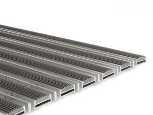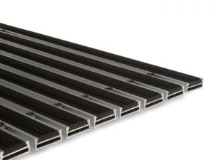 Faltbare Eingangsmatte, für Auβen und Innenraum (Zone I und II) für Sohlenreinigung. Mit Anwendung von Rippen - Gummi und Aluminium-Flacheisen. Anwendung bei mittlerem Fußgänger-, Einkaufswagen-, Rollstuhlverkehr, z.B. für Hotels, Büros, Geschäfte, Wohngebäuden.