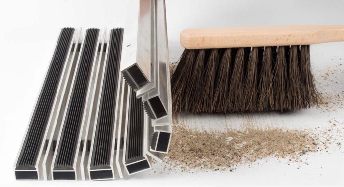 Fußmatten aus Aluminiumprofilen sind für Fußgängerverkehr im Innenraum/ in Gebäuden und auch im Außen geeignet.